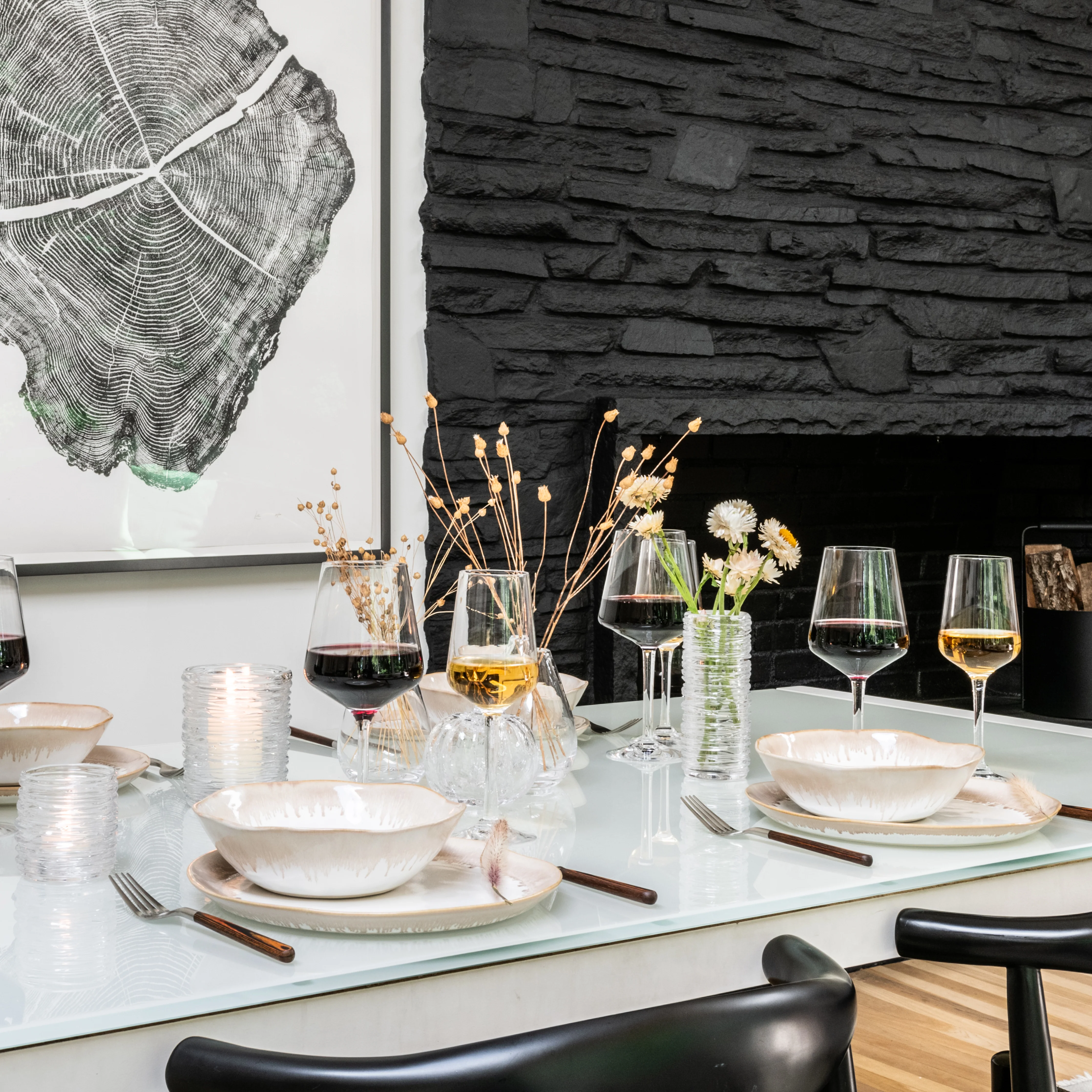 In Bluff: a soft neutral glaze applied with an artistic drip technique along the rim that adds a one-of-a-kind pop of color to existing Burlington place settings, or makes a bold statement on its own.